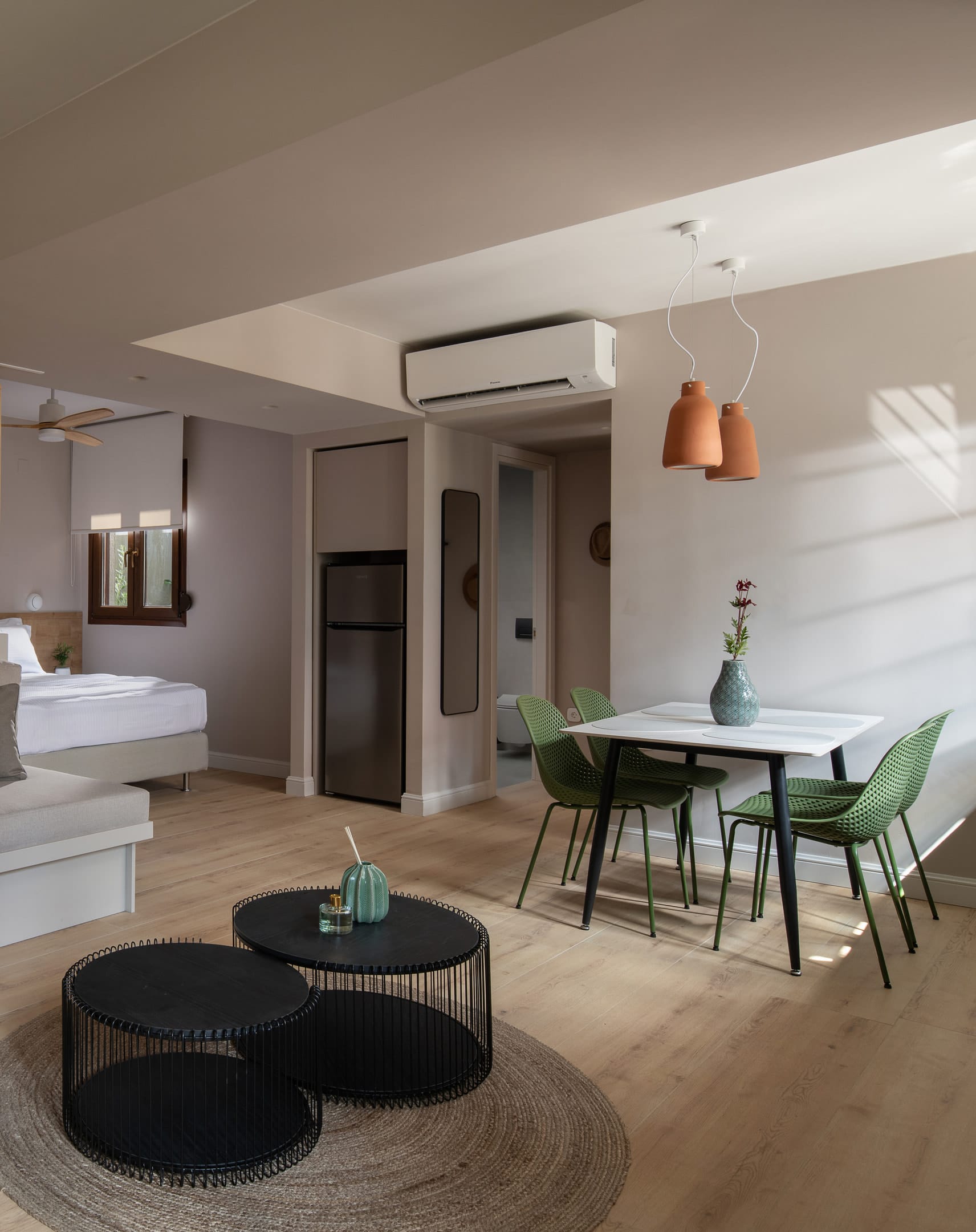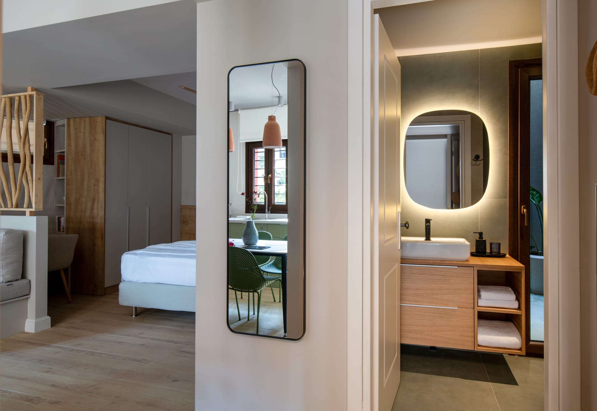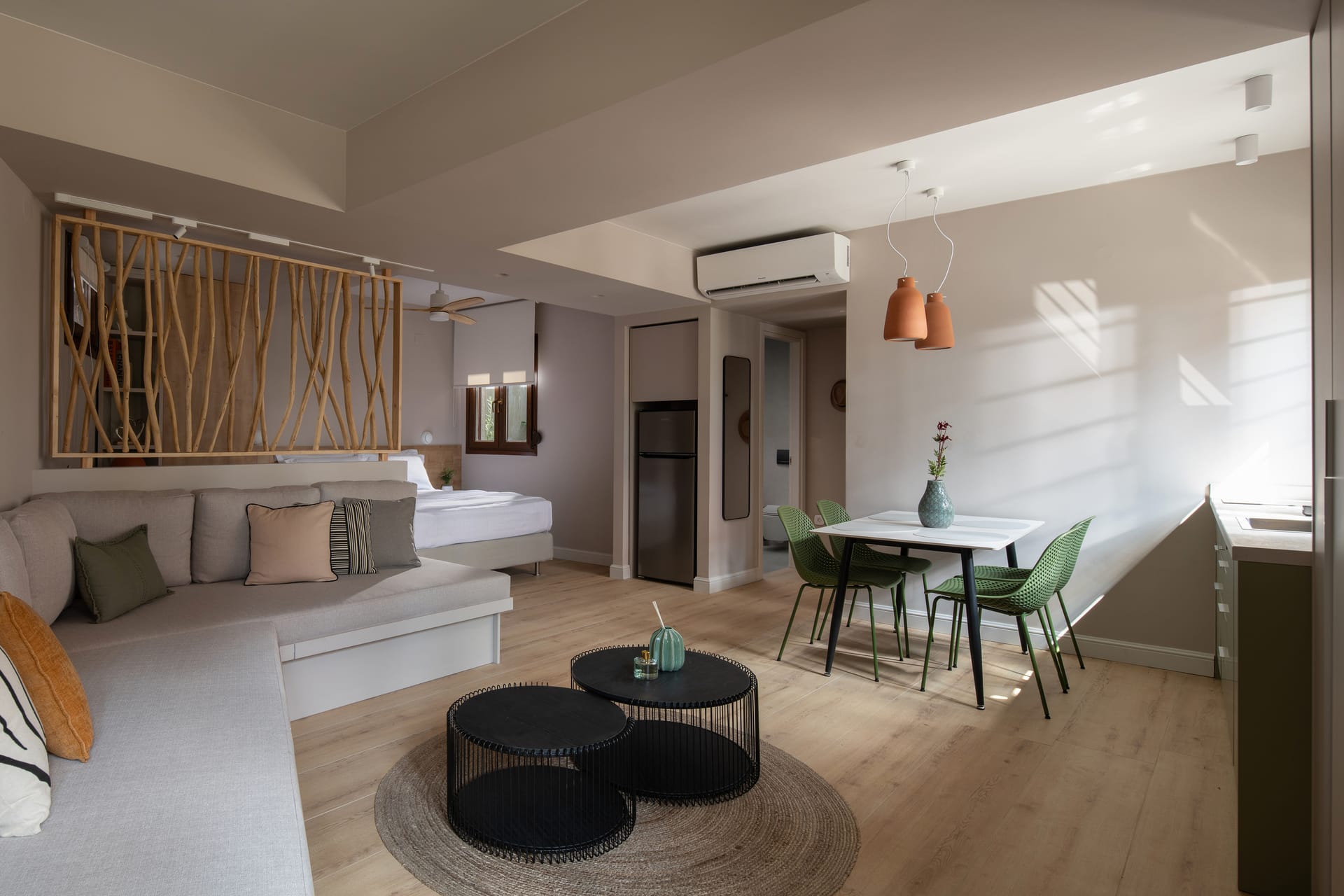 This ground-floor Junior Suite is ideal for visitors seeking tranquility and easy access to the landmarks of Ano Poli. It features tasteful, minimalist décor with local touches, along with all modern amenities for a comfortable stay: a compact equipped kitchen, air conditioning, Wi-Fi, and a cozy bedroom.