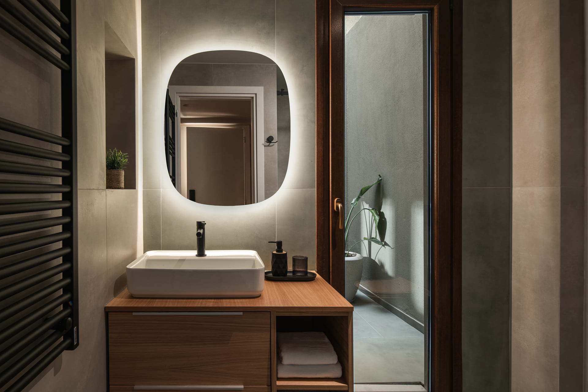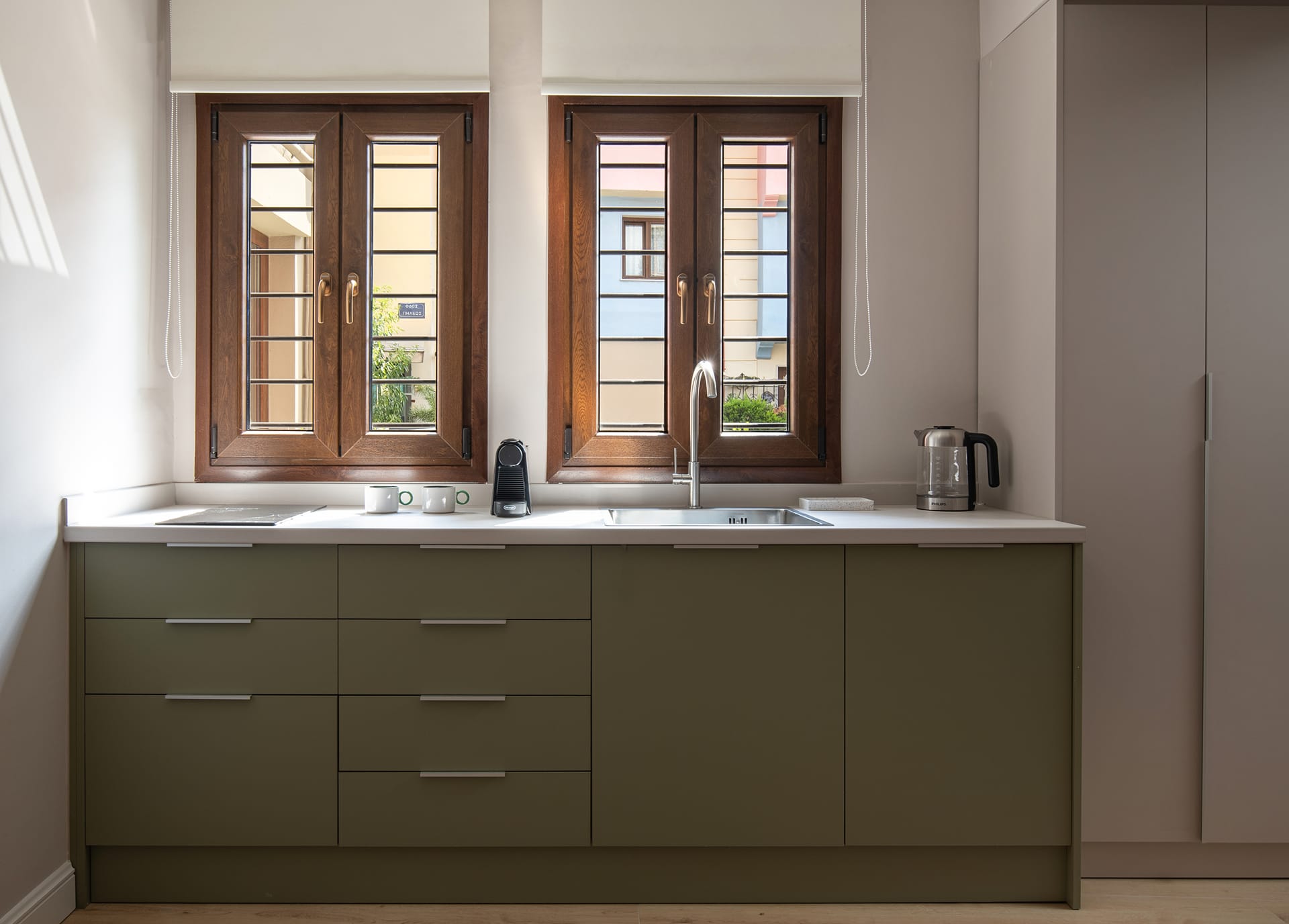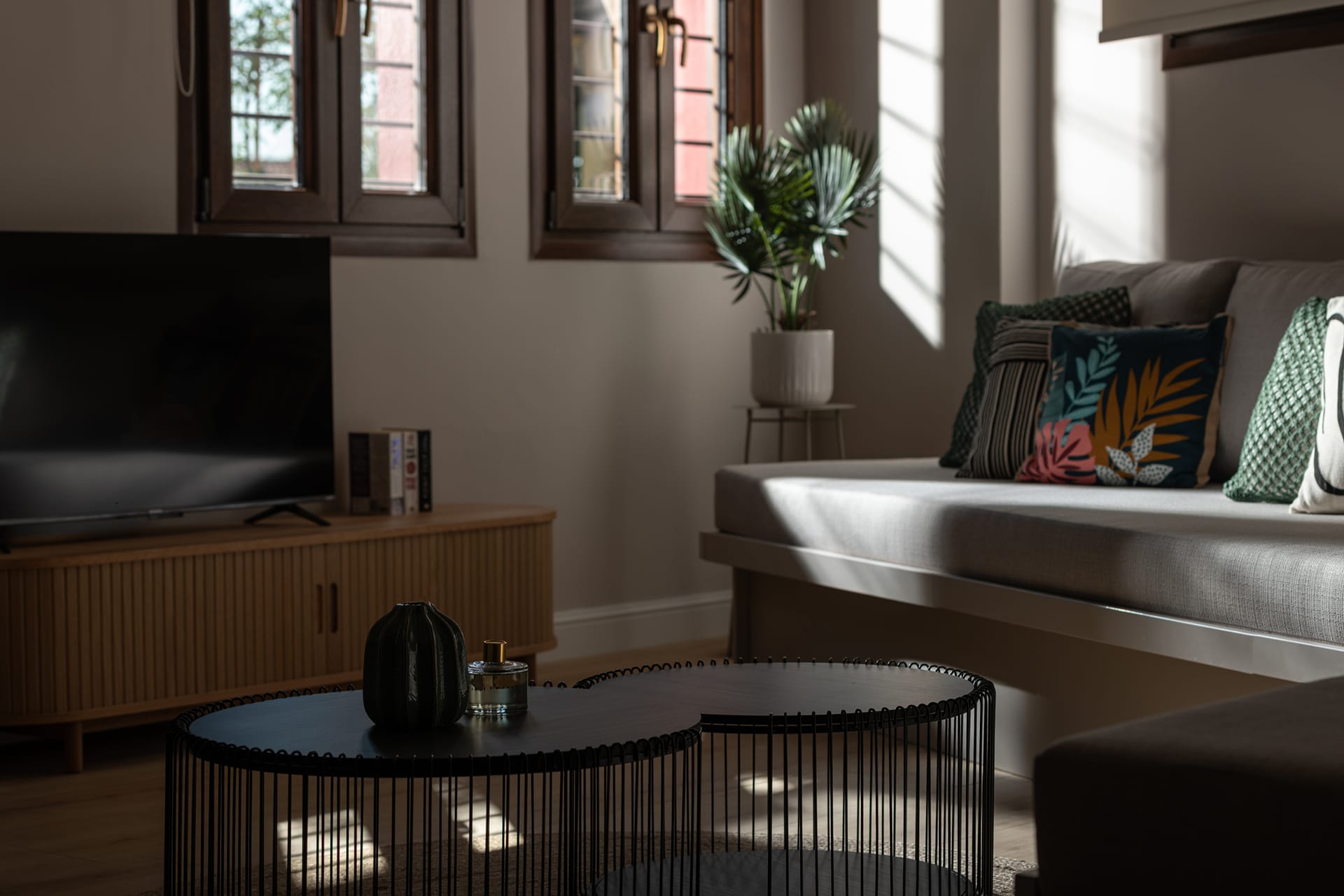 This ground-floor Junior Suite is ideal for visitors seeking tranquility and easy access to the landmarks of Ano Poli. It features tasteful, minimalist décor with local touches, along with all modern amenities for a comfortable stay: a compact equipped kitchen, air conditioning, Wi-Fi, and a cozy bedroom.