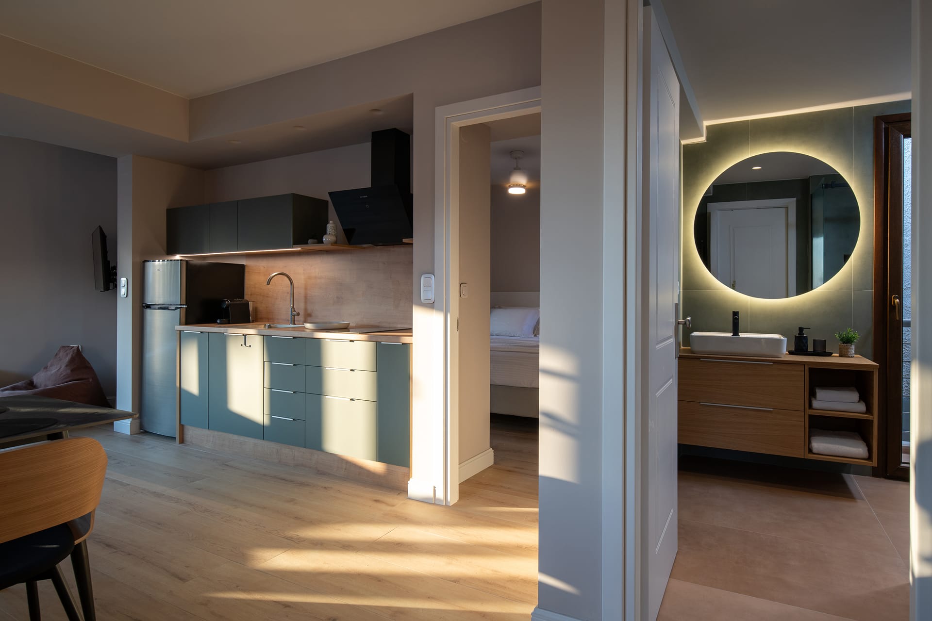 - Bedroom, living room, basic equipped kitchen, bathroom